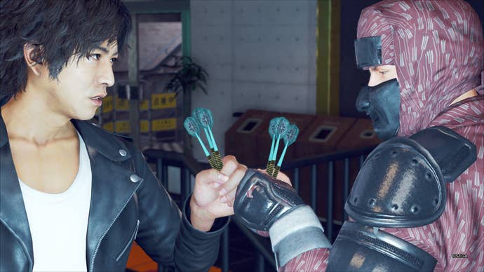 Living in a small neighborhood, it's normal to find yourself frequenting the same places over and over again, and naturally, befriending the cashiers and service people that work there. In Judgment, it's no different, and the friendships you forge through these interactions and side quests net you occasional gifts, or they even help in battle. Like Ryan, the obvious gaijin in a corny ninja outfit who helpfully pops up now whenever I battle some yakuza in the streets now.