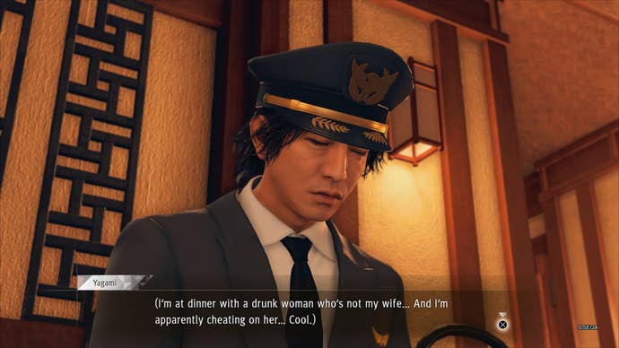 Like Kiryu, Yagami's a man of morals. In one string of cases, he chases down and beats up nasty serial gropers; when a man's wig flies off, Yagami chases after it with no question. ...Well, maybe some questions. He saves a 19-year-old aspiring musician after her seedy producer tries to assault her, and kicks his ass too. In a gross follow-up, however, the musician in question is one of four women Yagami's able to date. He is 35. (Luckily, the other women are in their late 20s and, thus, closer to his age.) The potential girlfriends each have their own subplots, usually related to the side case wherein you first met each of them.