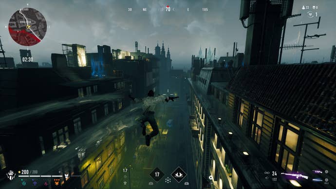 The map itself, a modern day rain-slicked Prague, is a nest of interlaced alleyways and sloping rooftops. Ageing Gothic structures clash with more modern construction, while the different regions are lit in subtle colouring so that leaping between areas feels like moving through scenes in a John Wick movie. It would be so easy to create a map set in this universe as a boring bundle of bricks and bushes, but the environmental design team nails it here. It’s early days, but it might be my favourite map in a Battle Royale.